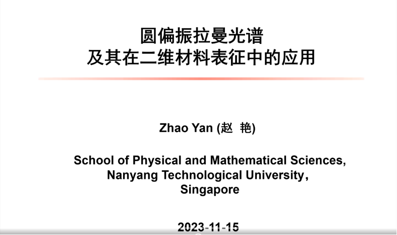 (理学院国际合作与交流中心 报道)理学院芯片产业学院于2023年11月15日上午邀请南洋理工大学赵艳博士进行了以“圆偏振拉曼光谱及其在二维材料表征中的应用”为主题的学术报告。本次报告采取线上会议的方式进行。