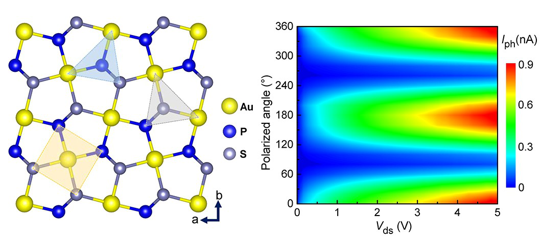 研究结果显示,得益于其间接带隙和独特的皱褶结构,AuPS实现了高效的载流子分离。实验测得其光吸收二色性比率为5,电导各向异性比率达12,光电流各向异性比率更是高达16,这些关键指标显著优于现有典型的二维各向异性材料。此外,基于AuPS构建的光电探测器表现出优良的综合光电响应性能与环境稳定性,这使二维AuPS半导体成为下一代偏振敏感纳米电子和光电子器件的理想候选材料。