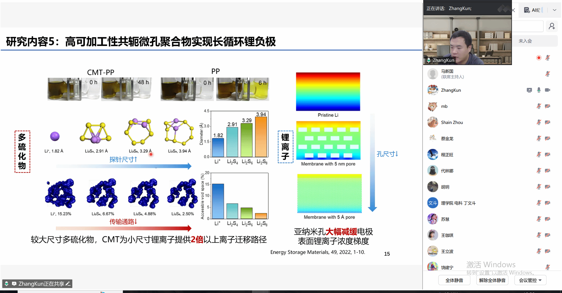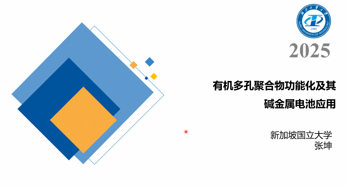 2025年9月26日上午,应学院邀请,新加坡国立大学的张坤博士进行了材料化学相关领域的线上学术报告,主题为:“有机多孔聚合物功能化及其碱金属电池应用”。