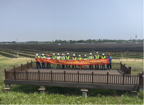 15日,理学院/芯片产业学院副院长马新国陪同南非代表团参观了中电国际-隆基绿能麻城市多能互补新能源基地。