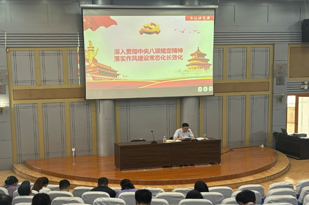 为深入贯彻落实中央八项规定及其细则实施精神,推动作风建设走深走实,5月8日下午,学院党委在科技楼二楼报告厅开展了“书记讲党课——深入贯彻中央八项规定精神 落实作风建设常态化长效化”专题党课。本次党课由学院党委书记石勇主讲,全院教职工参加。