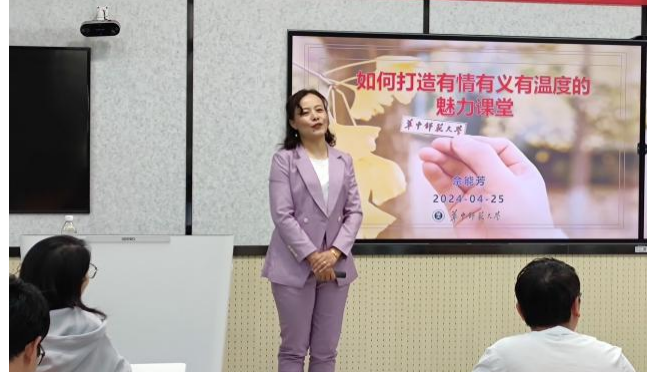 4月25日下午,由理学院芯片产业学院主办的2024年第五期教师教学沙龙在实训楼B1-5教室举行。本次沙龙邀请到全国青教赛一等奖获得者华中师范大学佘能芳教授,以“如何打造有情有义有温度的课堂”为主题作了精彩报告,报告由学院院长吕辉主持,学院全体青年教师参加活动。