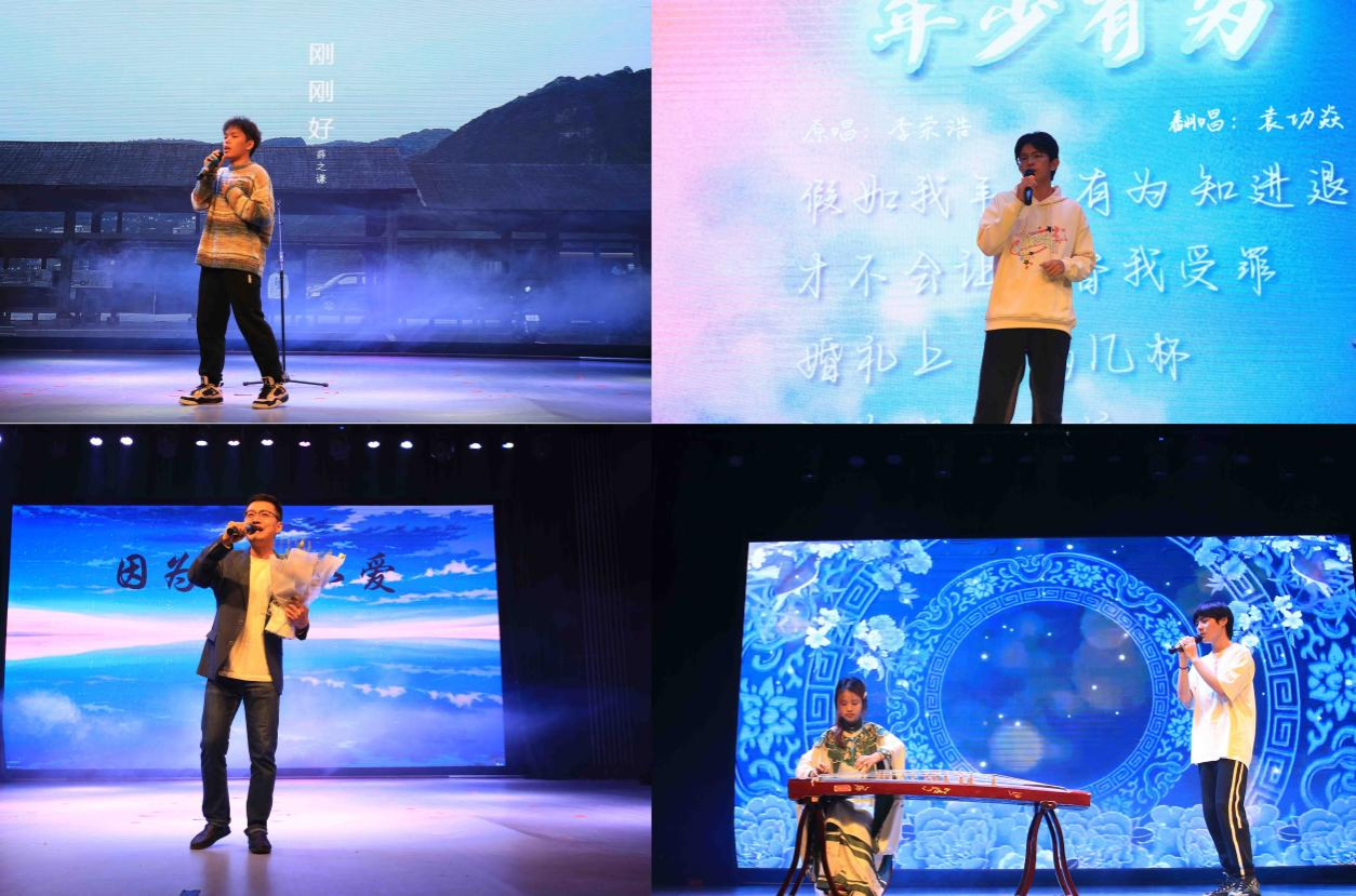 晚会节目丰富多彩,小品舞蹈,歌曲朗诵,无一不吸引着观众。21级辅导员饶才骏老师的一首《因为爱,所以爱》使现场氛围达到顶峰,古筝弹奏演唱《青花瓷》带观众走进那副江南水墨画,朗诵《秋天里的中国》将中国故事娓娓道来,现场氛围热烈。