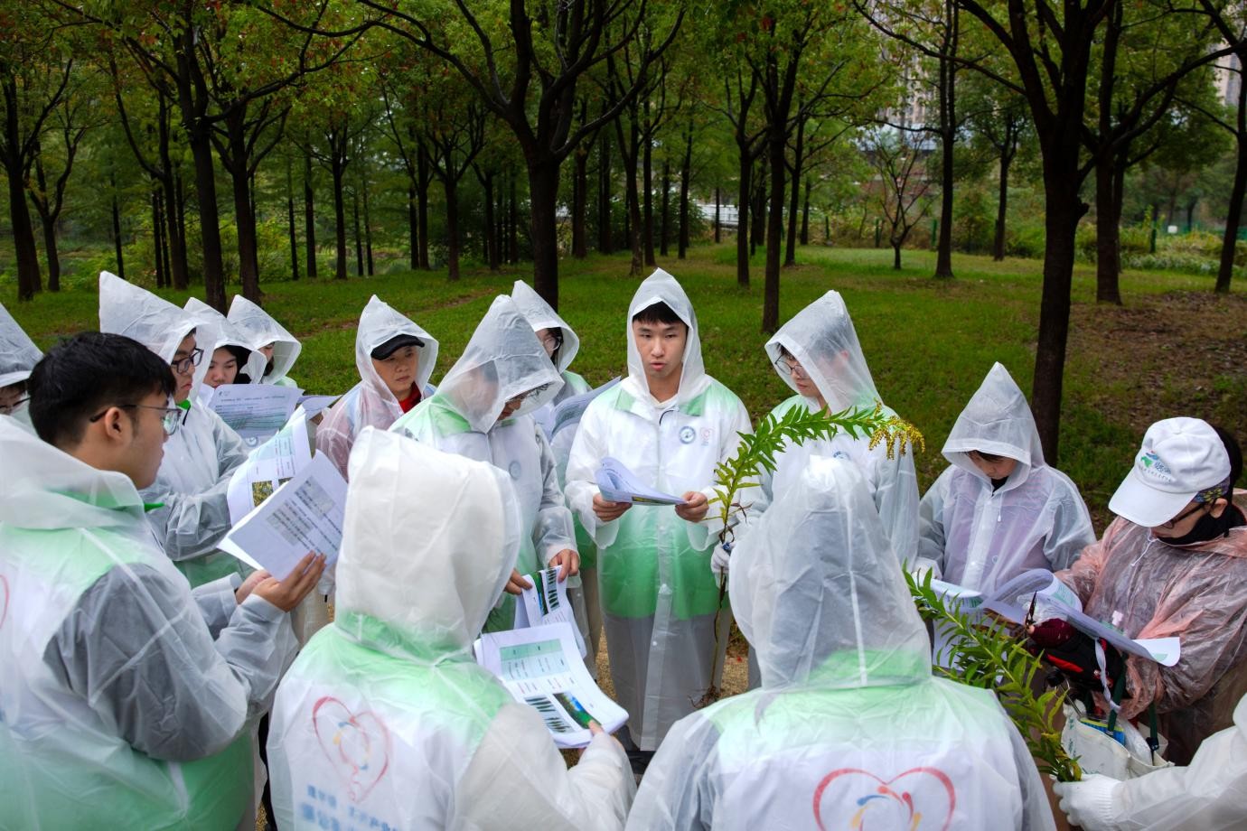 考虑到雨天作业的特殊性,学院提前备齐雨衣、手套与志愿服等工具,逐一分发时反复叮嘱防滑、防扎伤等安全注意事项。